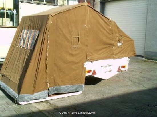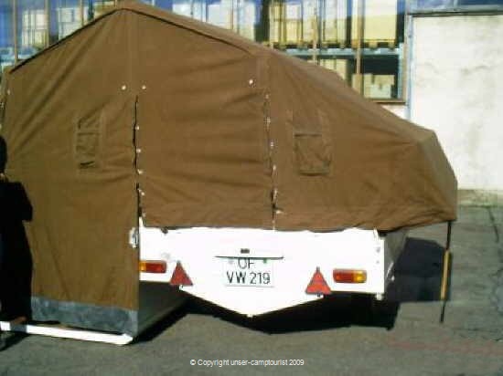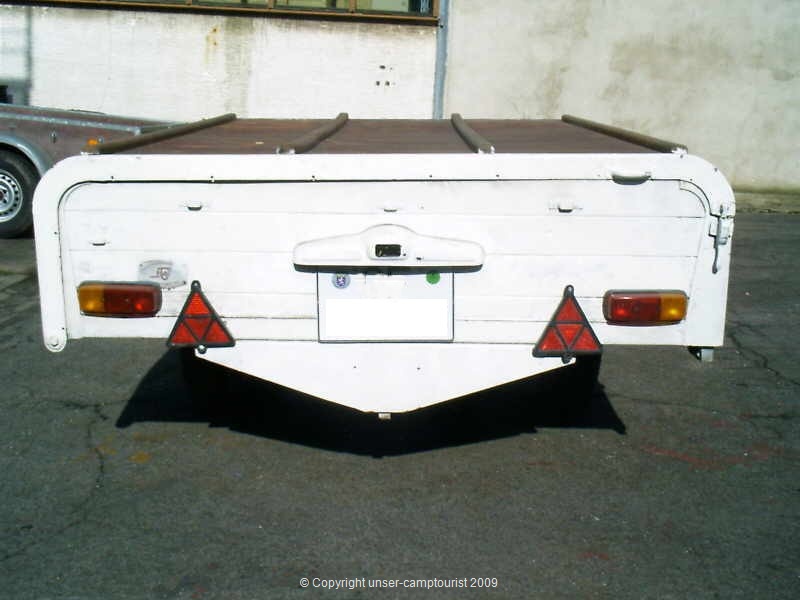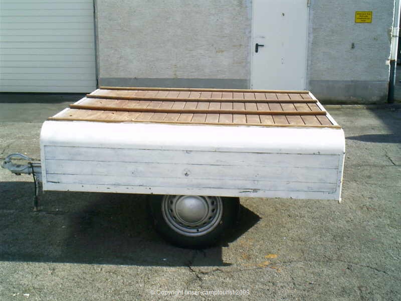 Der erste Falter von Camptourist, eine solide Holzkonstruktion für den Anhänger.