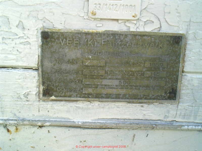 Das Typenschild, leider etwas verwittert.