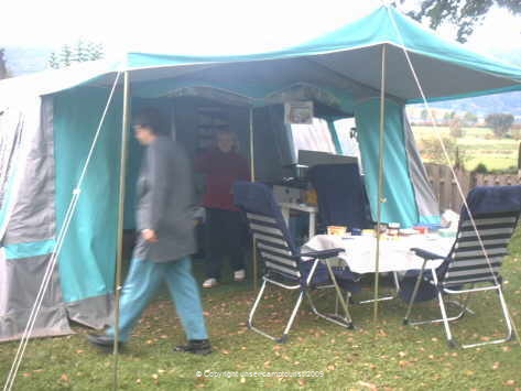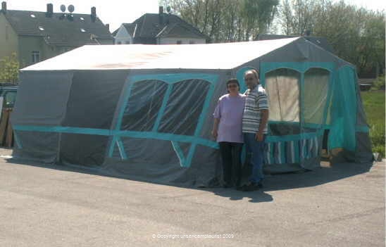 Da wir immer unsere 2 Labradore mitnehmen, brauchen wir etwas mehr Platz für die Hundeboxen. Daher haben wir das Vorzelt auf 18 qm vergrößert.