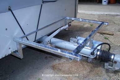 Hier nun das gute Stück, verzinkt und noch ohne die Fahrradschienen. Je nach Ausführung der Deichsel kann man 2 oder 3 Fahrräder damit transportieren.